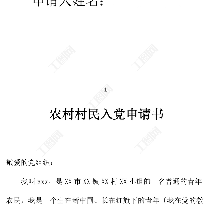 工圖網(wǎng)提供2021年農(nóng)村村民入黨申請書范文供會員免費(fèi)下載。更多精彩黨課PPT素材,盡在工圖網(wǎng)。