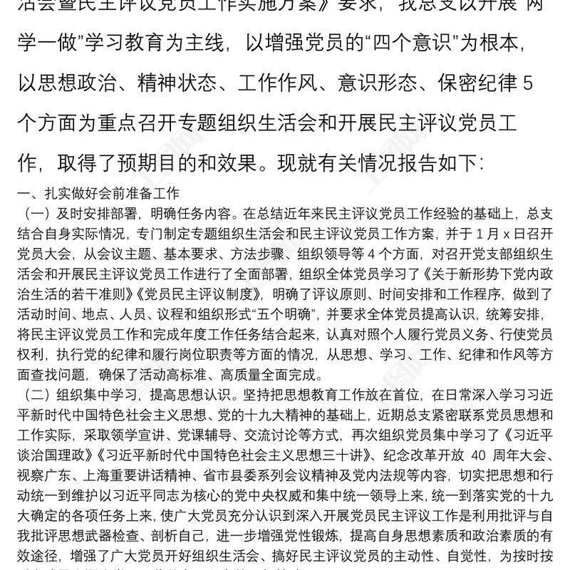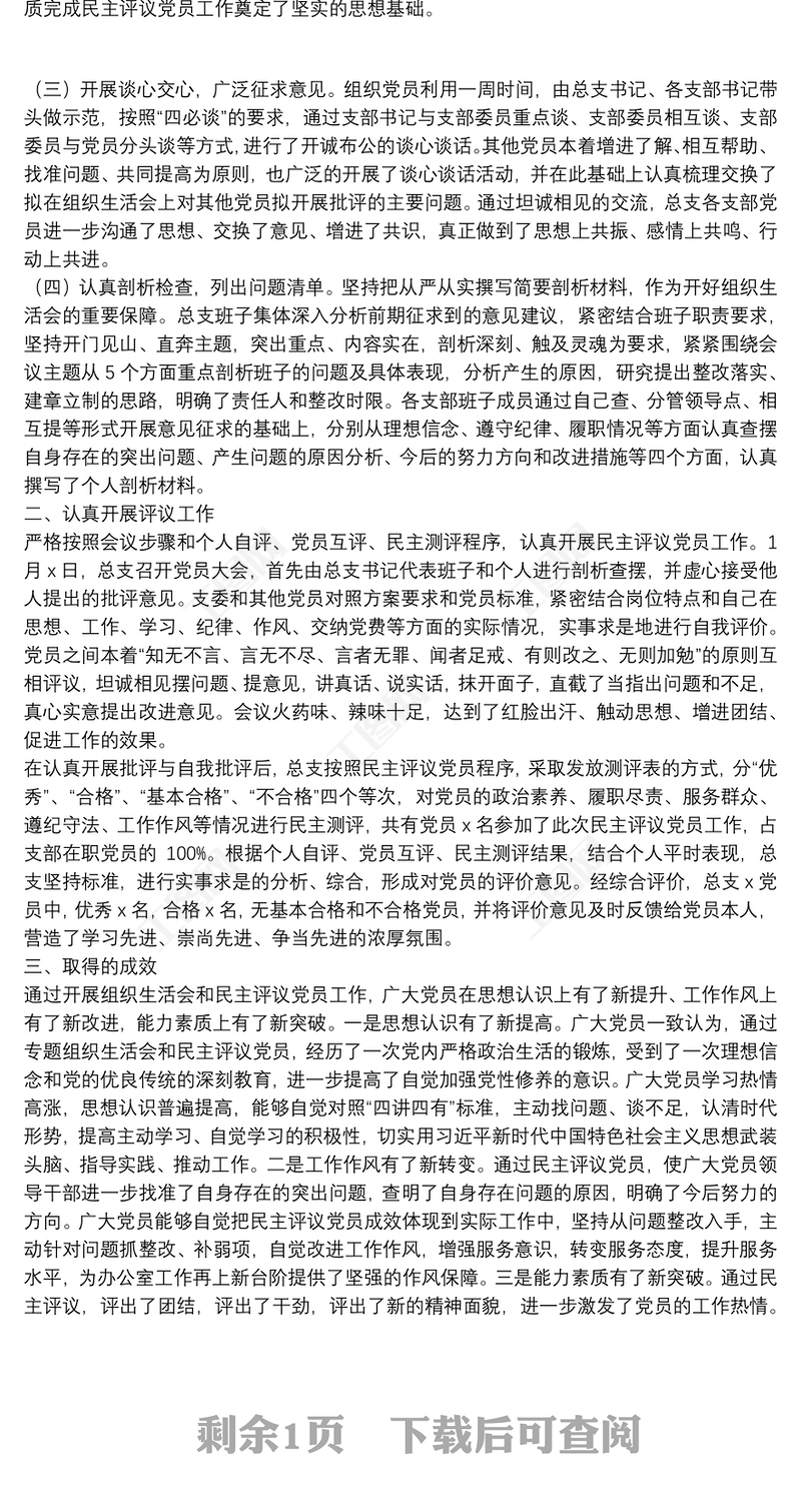 黨總支20**年組織生活會和民主評議黨員工作總結(jié)