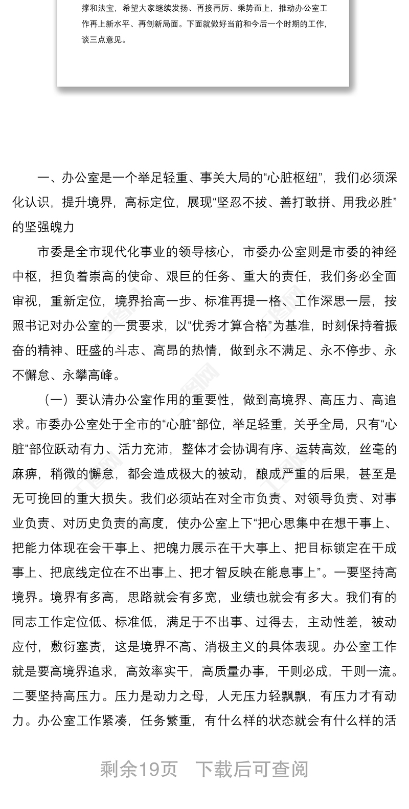 工圖網(wǎng)提供2021【13萬字】市委辦公室全體工作人員會(huì)議領(lǐng)導(dǎo)講話范文供會(huì)員免費(fèi)下載。更多精彩黨課PPT素材,盡在工圖網(wǎng)。