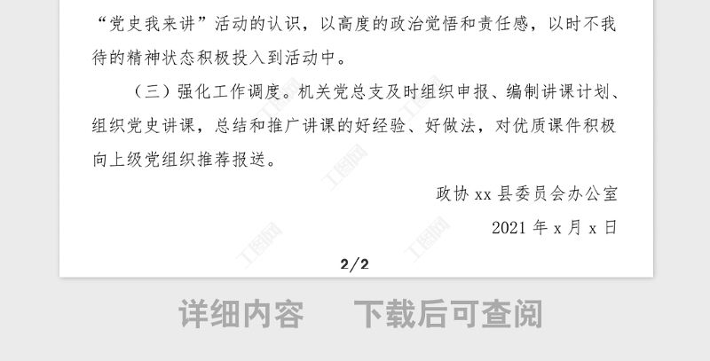 工圖網(wǎng)提供縣政協(xié)機(jī)關(guān)黨史我來講活動(dòng)方案范文黨史學(xué)習(xí)教育活動(dòng)方案供會(huì)員免費(fèi)下載。更多精彩黨課PPT素材,盡在工圖網(wǎng)。