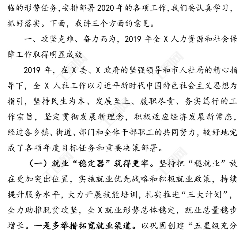 在2020年全X人力資源和社會保障工作會議上的講話,工作會議講話,工作會議講話,公文范例,領導述職報告,機關公文寫作 Array
