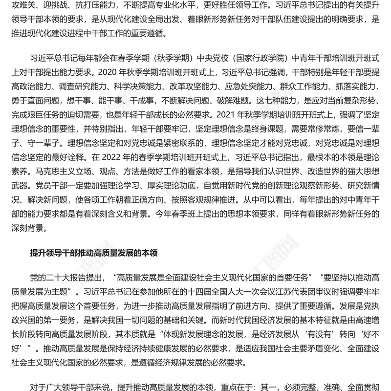 > 黨課講稿 > 2023提升四種本領(lǐng)更好勝任領(lǐng)導(dǎo)工作PPT大氣精美風(fēng)黨員干部學(xué)習(xí)教育專題黨課課件模板(講稿).DOCX 【圖片、文字、動畫均可編輯】