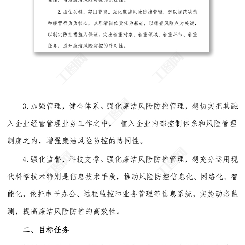工圖網(wǎng)提供集團(tuán)公司開展廉潔風(fēng)險(xiǎn)防控管理工作實(shí)施方案供會(huì)員免費(fèi)下載。更多精彩黨課PPT素材,盡在工圖網(wǎng)。