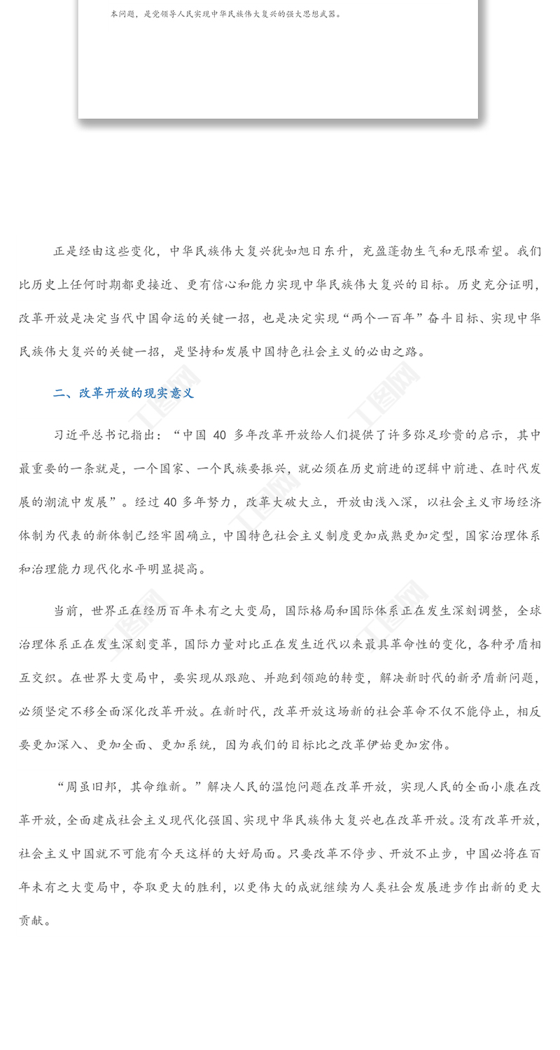 工圖網(wǎng)提供研討發(fā)言:學(xué)習(xí)改革開放歷史 續(xù)寫新時代改革開放新篇章供會員免費下載。更多精彩黨課PPT素材,盡在工圖網(wǎng)。