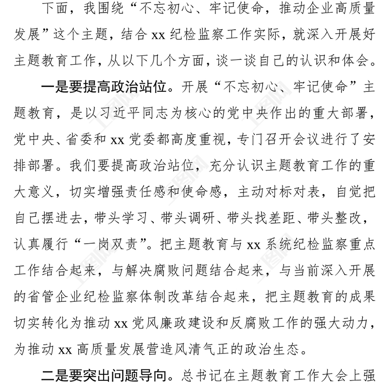 紀(jì)委書記“不忘初心牢記使命”主題教育學(xué)習(xí)研討發(fā)言不忘初心主題教育