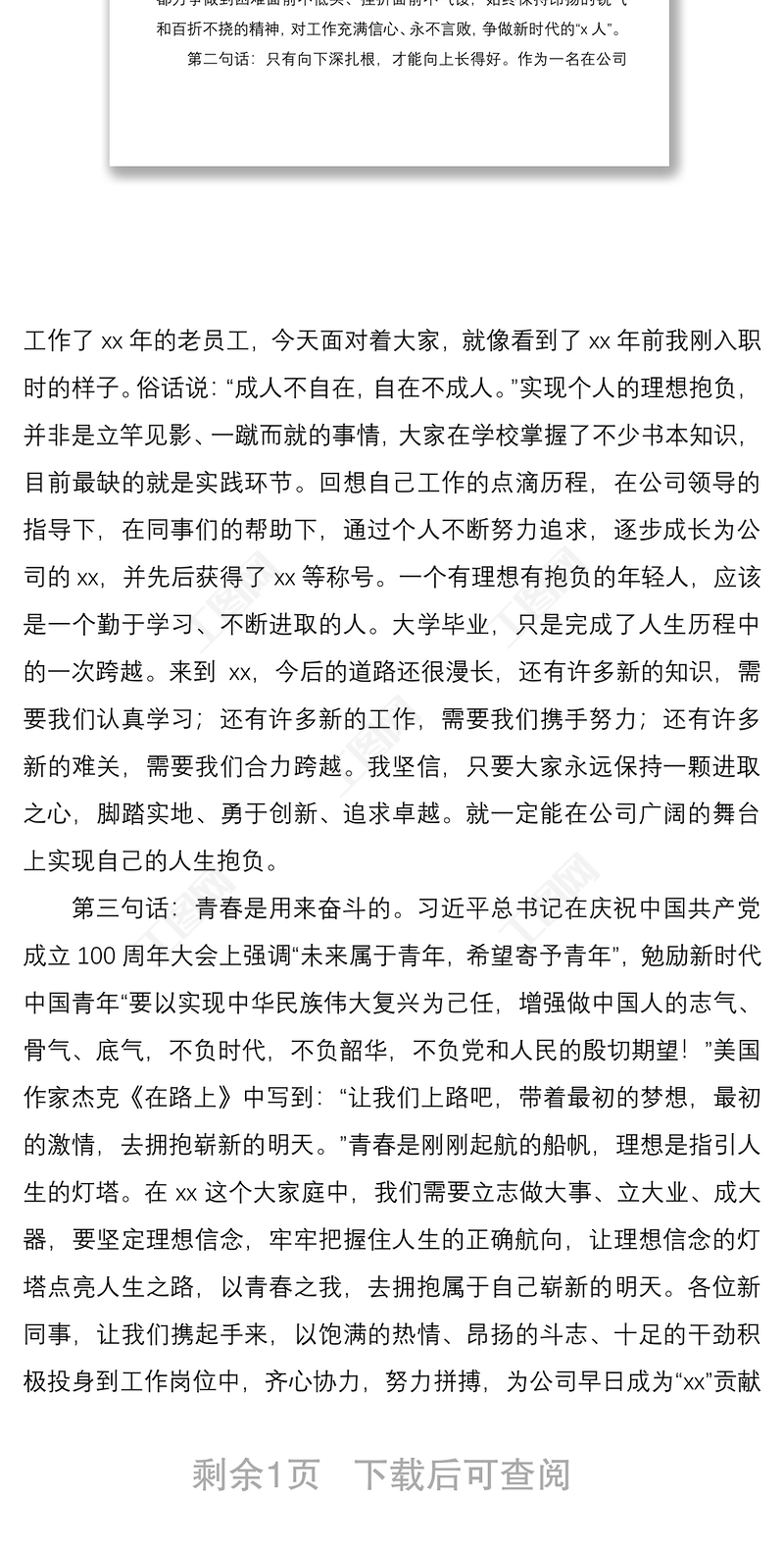 工圖網(wǎng)提供2021員工發(fā)言在公司新員工入職儀式上老員工代表的發(fā)言材料范文集團公司企業(yè)工作經(jīng)驗介紹供會員免費下載。更多精彩黨課PPT素材,盡在工圖網(wǎng)。