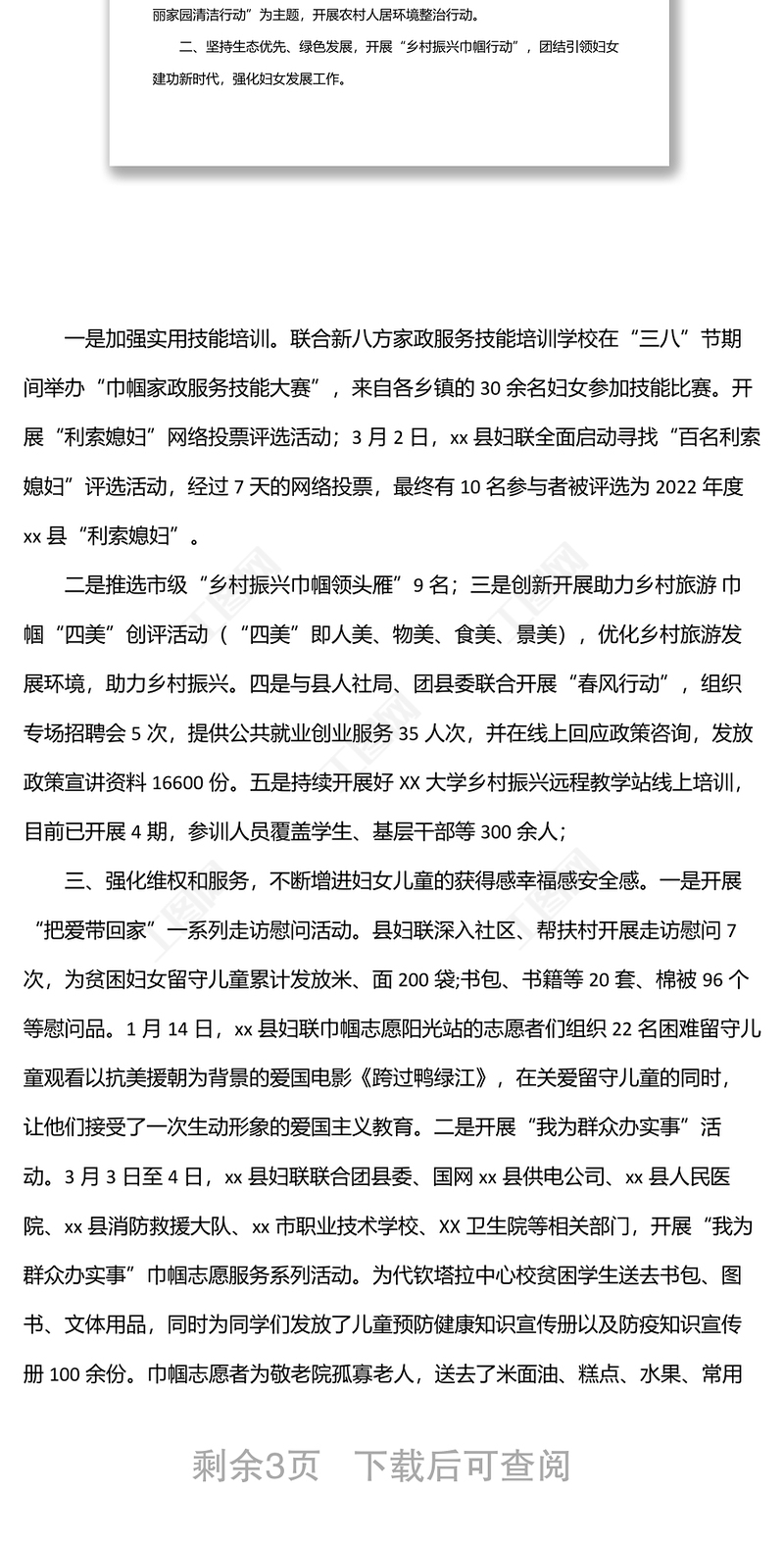 2022年縣婦聯(lián)上半年工作總結(jié)和下半年工作計劃