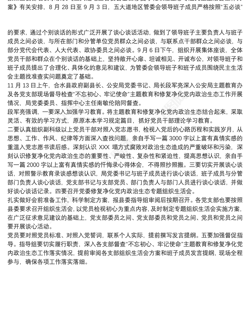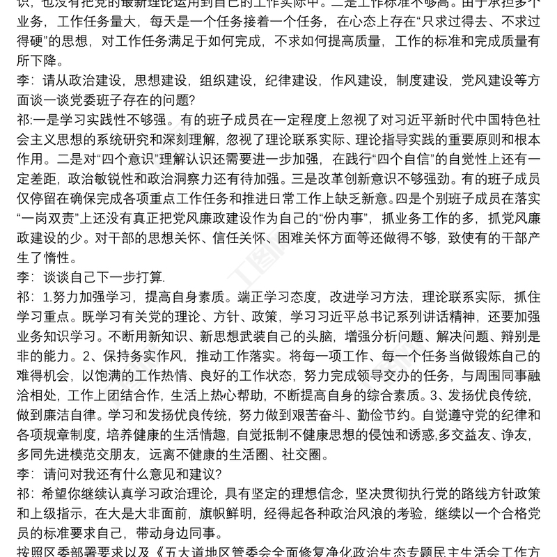 修復(fù)凈化黨內(nèi)政治生態(tài)談心談話記錄最新
