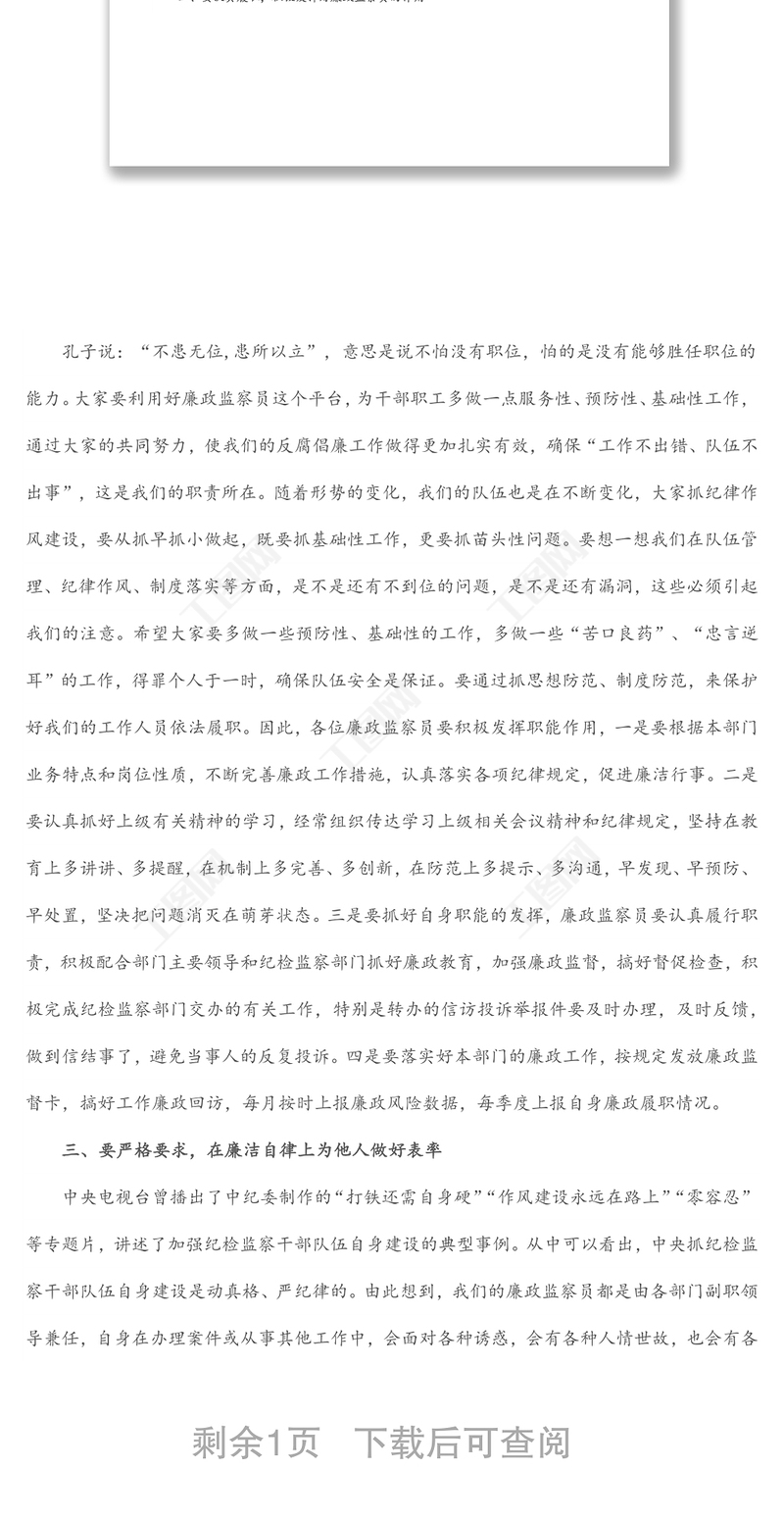 在廉政監(jiān)察員業(yè)務(wù)培訓(xùn)會(huì)上的講話,在廉政監(jiān)察員業(yè)務(wù)培訓(xùn)會(huì)上的講話 Array