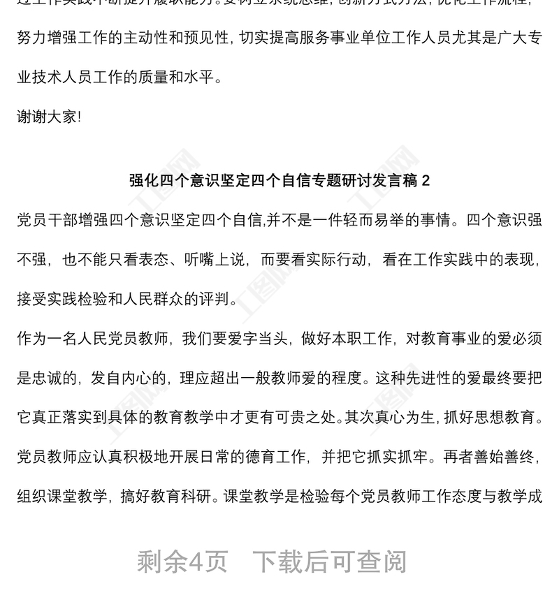 工圖網(wǎng)提供(3篇)強(qiáng)化四個(gè)意識(shí)堅(jiān)定四個(gè)自信專題研討發(fā)言稿供會(huì)員免費(fèi)下載。更多精彩黨課PPT素材,盡在工圖網(wǎng)。