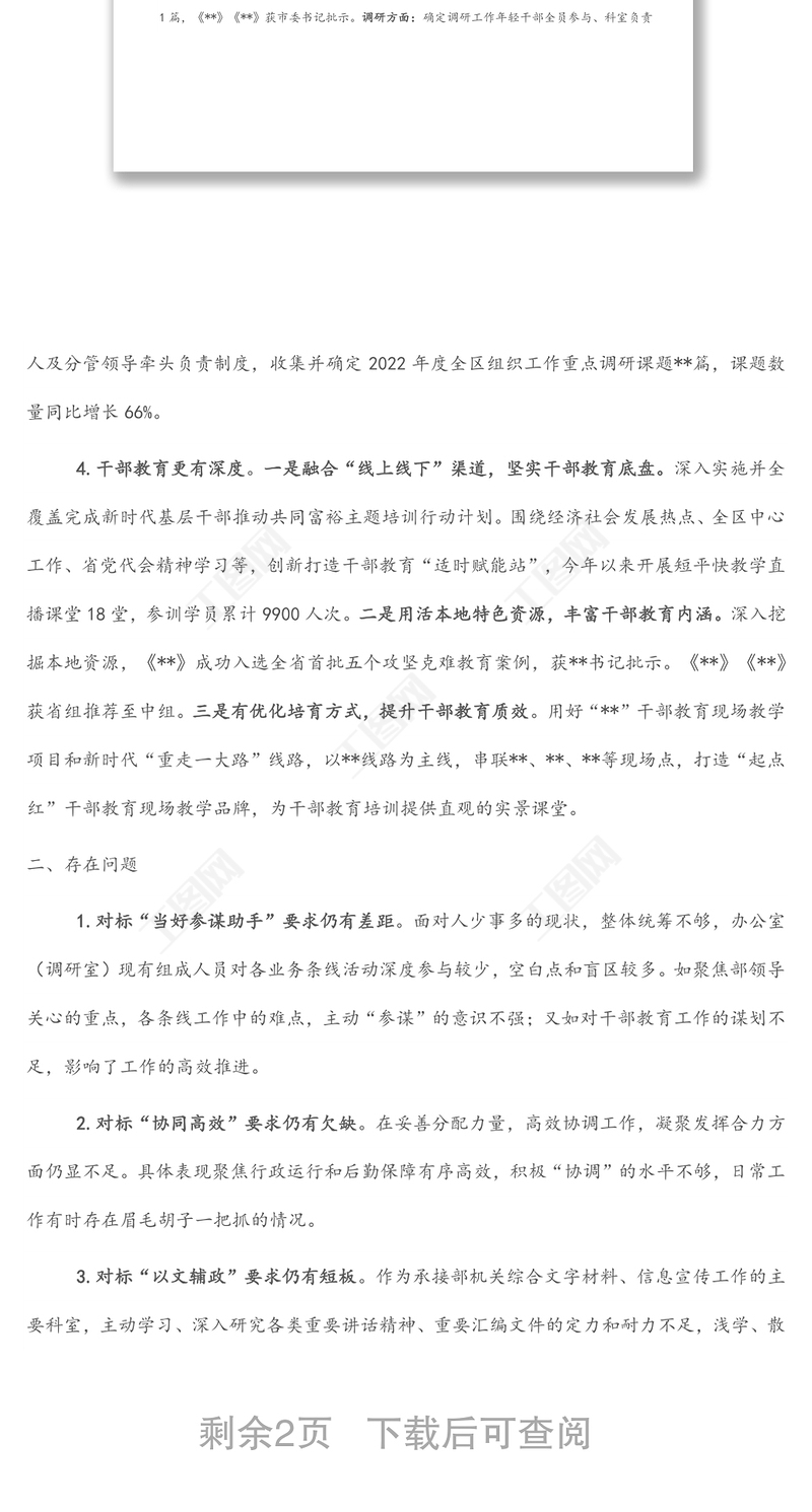 區(qū)組織部辦公室(調(diào)研室)2022年半年工作總結(jié),區(qū)組織部辦公室(調(diào)研室)2022年半年工作總結(jié) Array