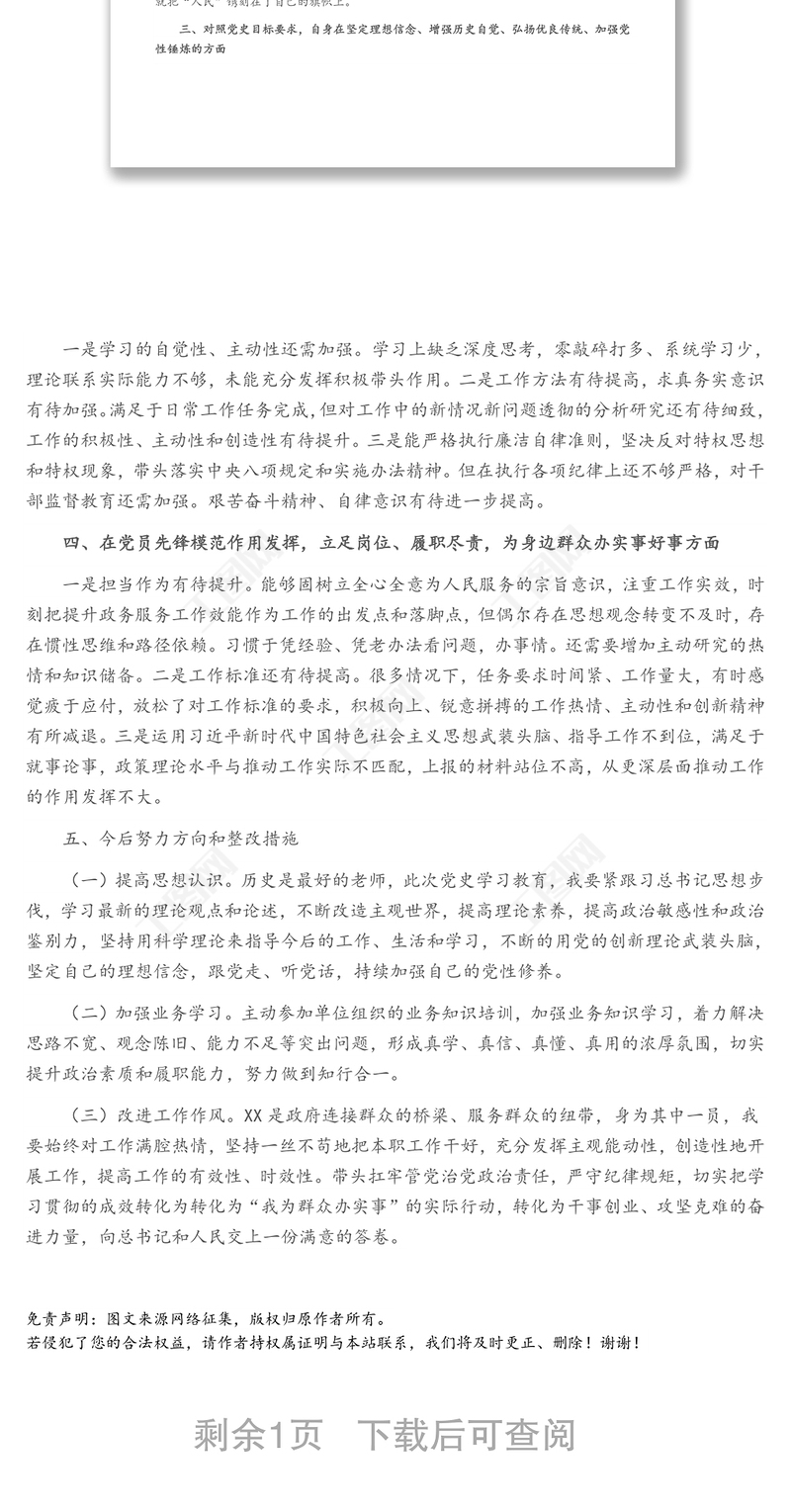 黨史學(xué)習(xí)教育專題個人對照檢查材料(黨員),黨史學(xué)習(xí)教育,公文范文 Array