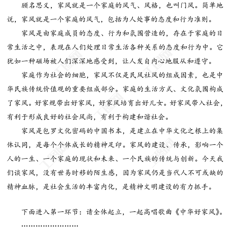工圖網(wǎng)提供市委辦公室道德講堂“家風(fēng)”主持詞供會(huì)員免費(fèi)下載。更多精彩黨課PPT素材,盡在工圖網(wǎng)。