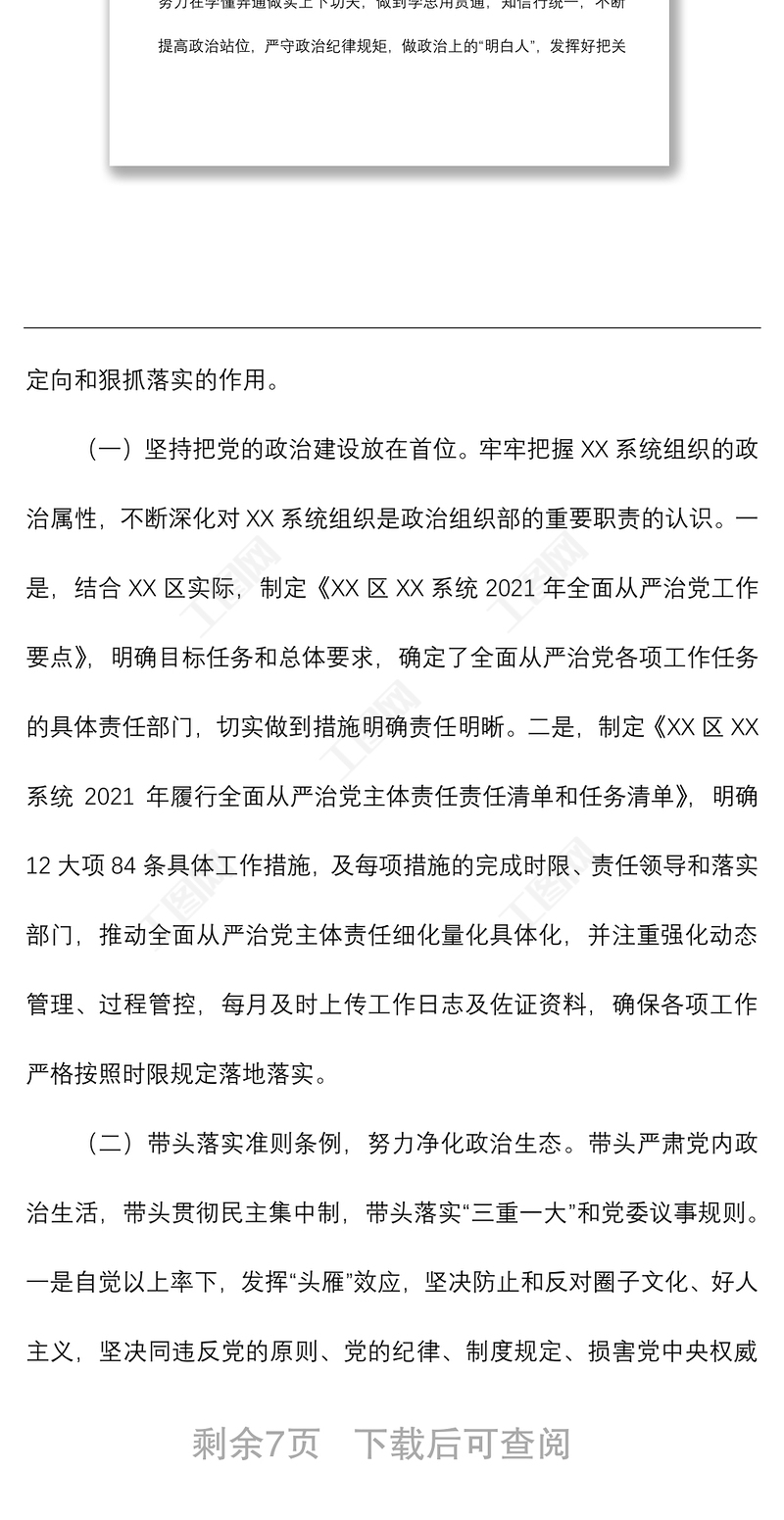 工圖網(wǎng)提供【原創(chuàng)】區(qū)委書記XX同志2021年上半年履行全面從嚴(yán)治黨第一責(zé)任工作情況報(bào)告供會(huì)員免費(fèi)下載。更多精彩黨課PPT素材,盡在工圖網(wǎng)。