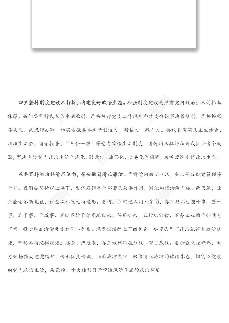 工圖網(wǎng)提供縣委書(shū)記嚴(yán)肅黨內(nèi)政治生活研討發(fā)言供會(huì)員免費(fèi)下載。更多精彩黨課PPT素材,盡在工圖網(wǎng)。