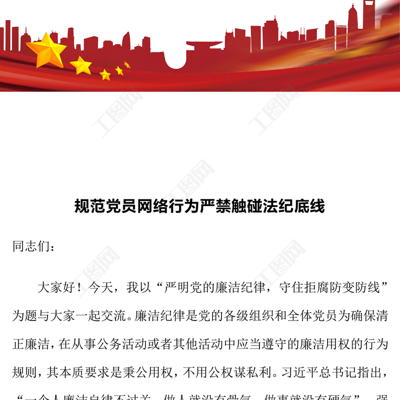 工圖網(wǎng)提供規(guī)精選范黨員網(wǎng)絡(luò)行為嚴(yán)禁觸碰法紀(jì)底線供會(huì)員免費(fèi)下載。更多精彩黨課PPT素材,盡在工圖網(wǎng)。