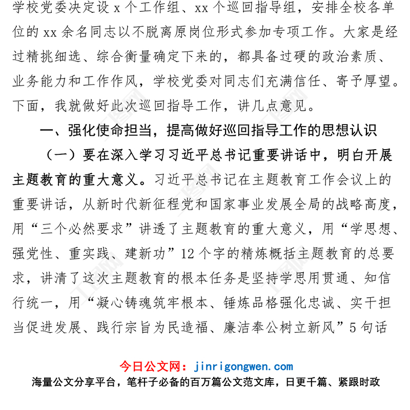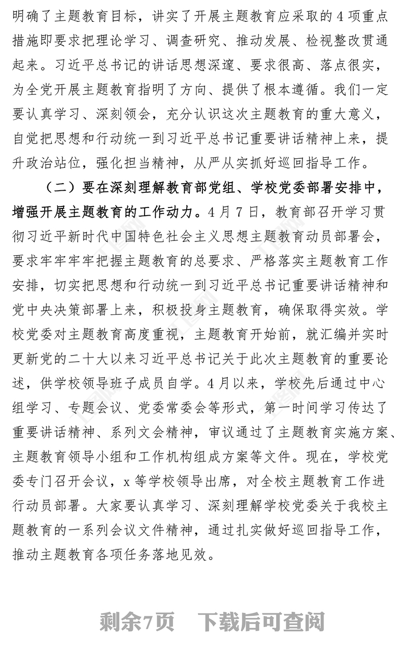 > 公文范文 > 高校巡回指導(dǎo)組學(xué)習(xí)貫徹新時(shí)代特色思想主題教育巡回指導(dǎo)工作培訓(xùn)會(huì)議講話大學(xué)學(xué)院.DOCX 【圖片、文字、動(dòng)畫均可編輯】
