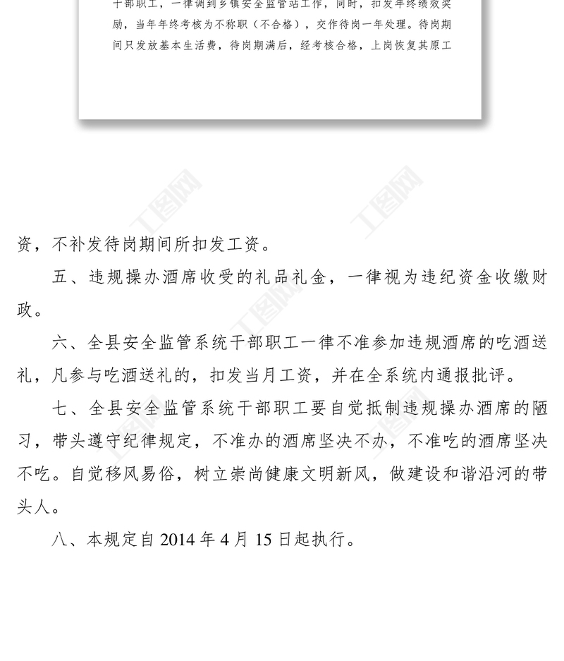 工圖網(wǎng)提供2021【規(guī)章制度】縣安監(jiān)局治理國家干部職工違規(guī)操辦酒席規(guī)定供會(huì)員免費(fèi)下載。更多精彩黨課PPT素材,盡在工圖網(wǎng)。