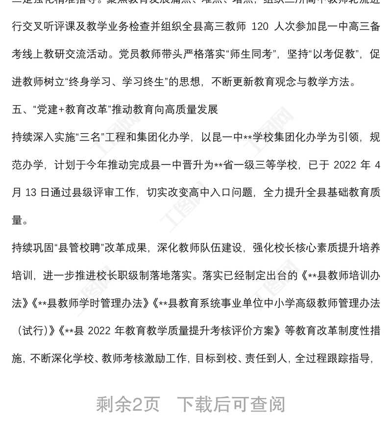 工圖網(wǎng)提供縣教體局黨建引領(lǐng)教育高質(zhì)量發(fā)展經(jīng)驗(yàn)材料供會(huì)員免費(fèi)下載。更多精彩黨課PPT素材,盡在工圖網(wǎng)。