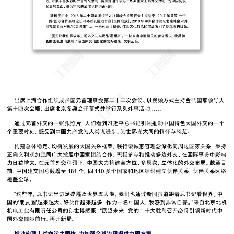 2022新時(shí)代10年偉大成就服務(wù)民族復(fù)興 促進(jìn)人類進(jìn)步——從“奮進(jìn)新時(shí)代”主題成就展看中國特色大國外交 Array