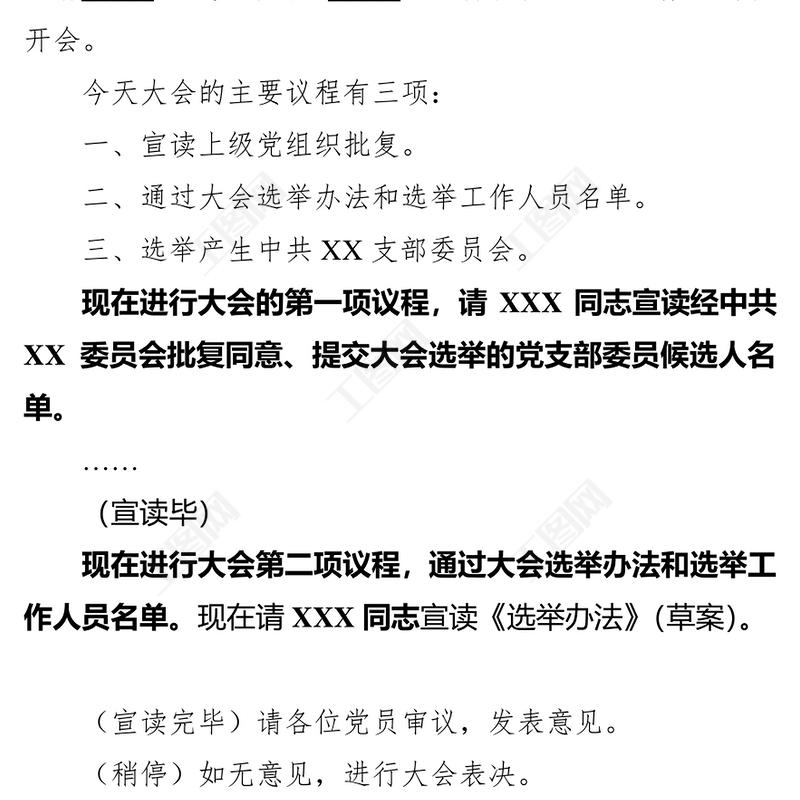 工圖網(wǎng)提供中共XX支部委員會(huì)黨員大會(huì)主持詞供會(huì)員免費(fèi)下載。更多精彩黨課PPT素材,盡在工圖網(wǎng)。