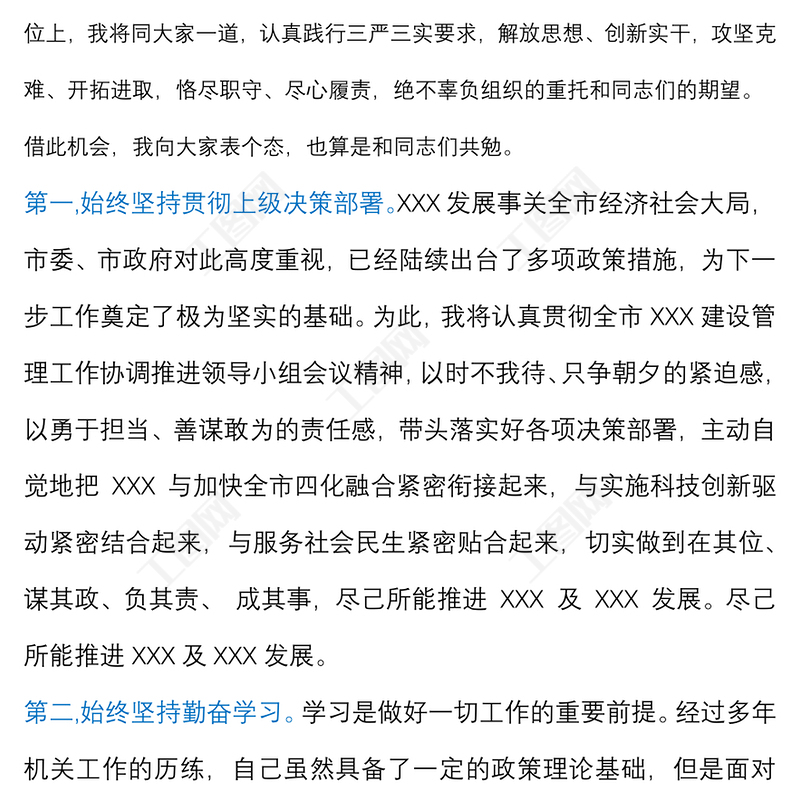 工圖網(wǎng)提供(3篇)新任領(lǐng)導(dǎo)干部表態(tài)發(fā)言稿供會(huì)員免費(fèi)下載。更多精彩黨課PPT素材,盡在工圖網(wǎng)。