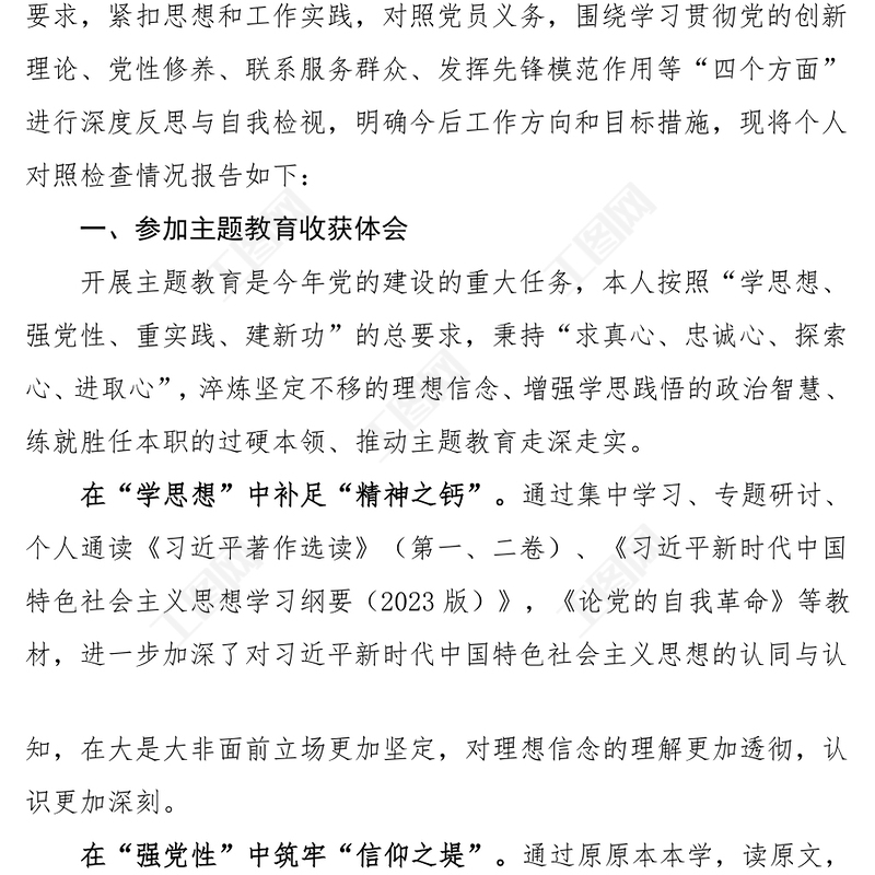 首頁 > WORD文檔 > 組織生活會 > 2023年度第二批主題教育組織生活會個(gè)人對照檢查材料.DOCX 【圖片、文字、動畫均可編輯】
