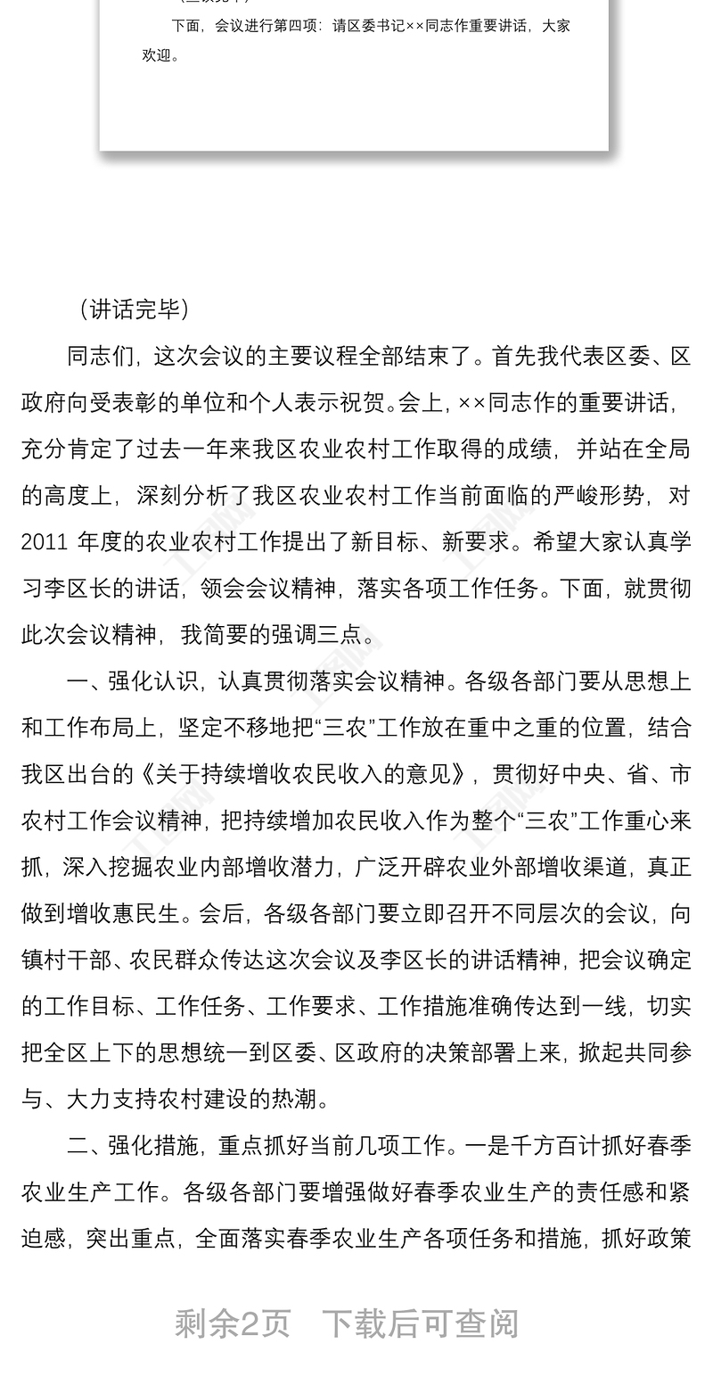 工圖網(wǎng)提供2021農(nóng)村工作會(huì)議主持詞供會(huì)員免費(fèi)下載。更多精彩黨課PPT素材,盡在工圖網(wǎng)。