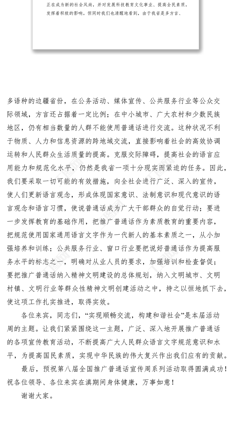 2021在第八屆推廣普通話宣傳周開幕式上的講話