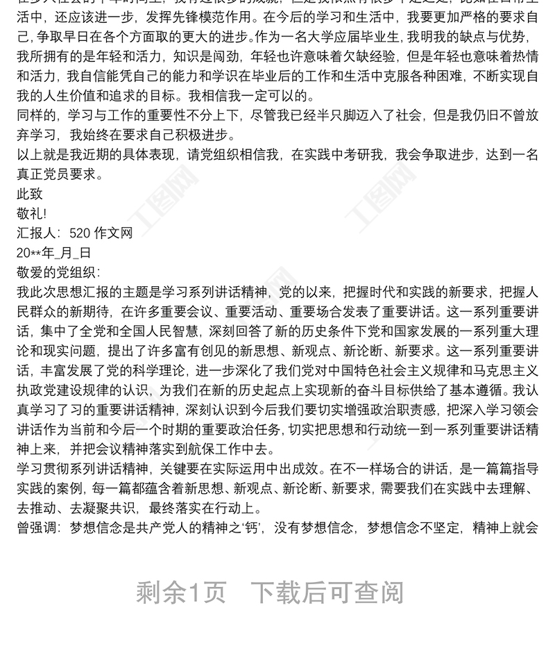 入黨積極分子的思想?yún)R報(bào)2020 入黨自傳10000字范文 Array