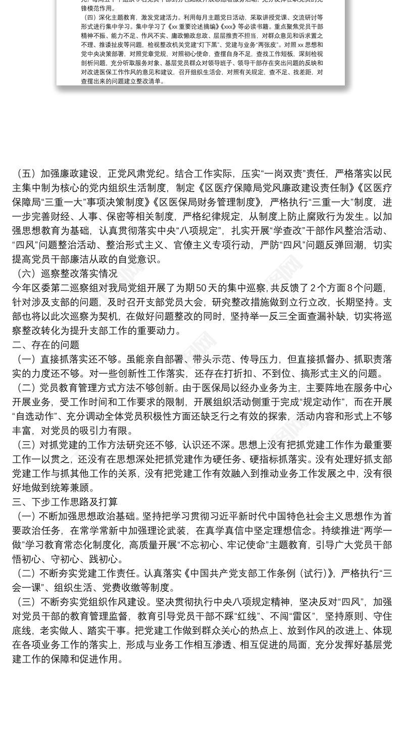 20**年度區(qū)醫(yī)保局黨支部書記抓黨建工作述職報(bào)告 Array