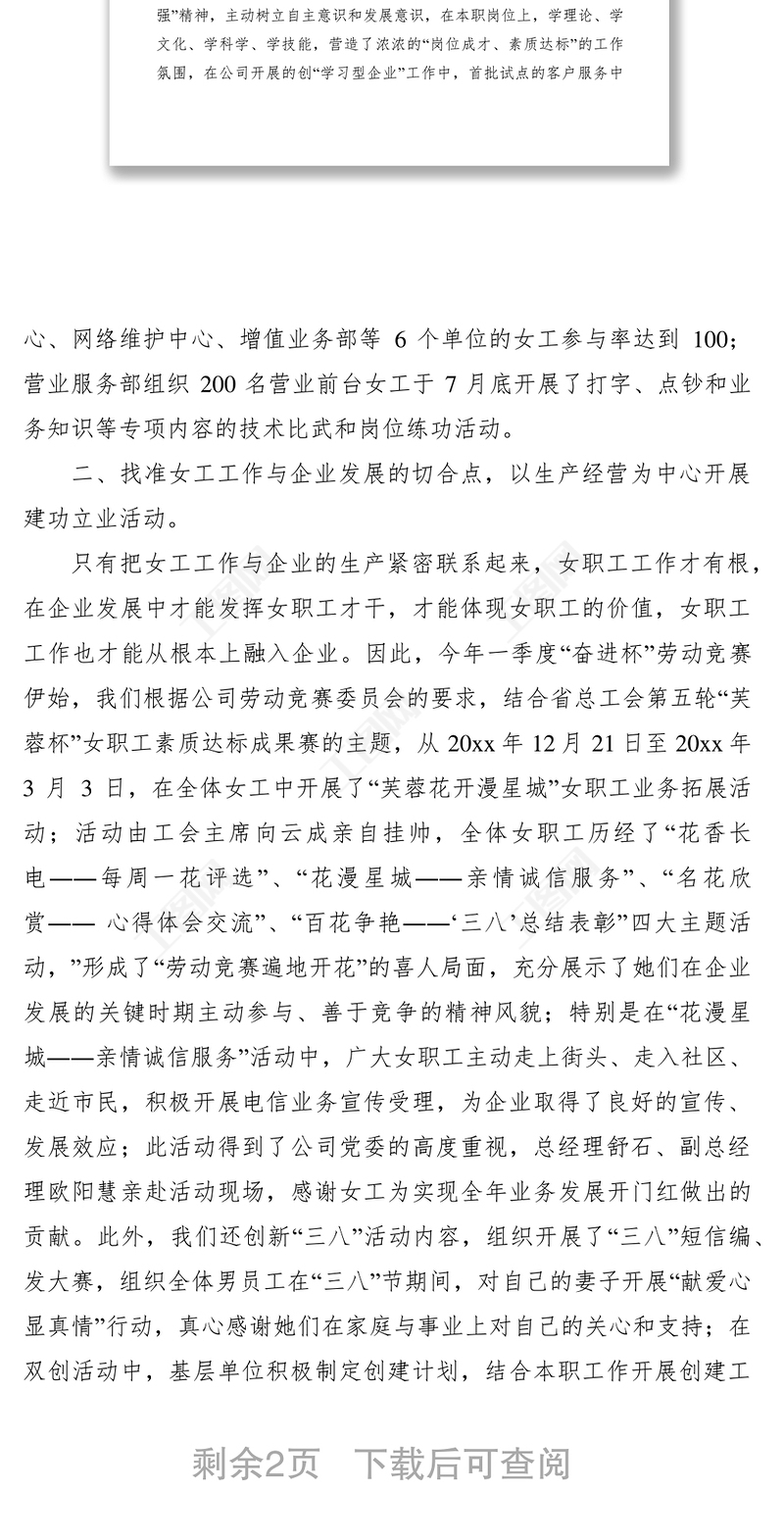 2021電信分公司女工工作上半年總結(jié)