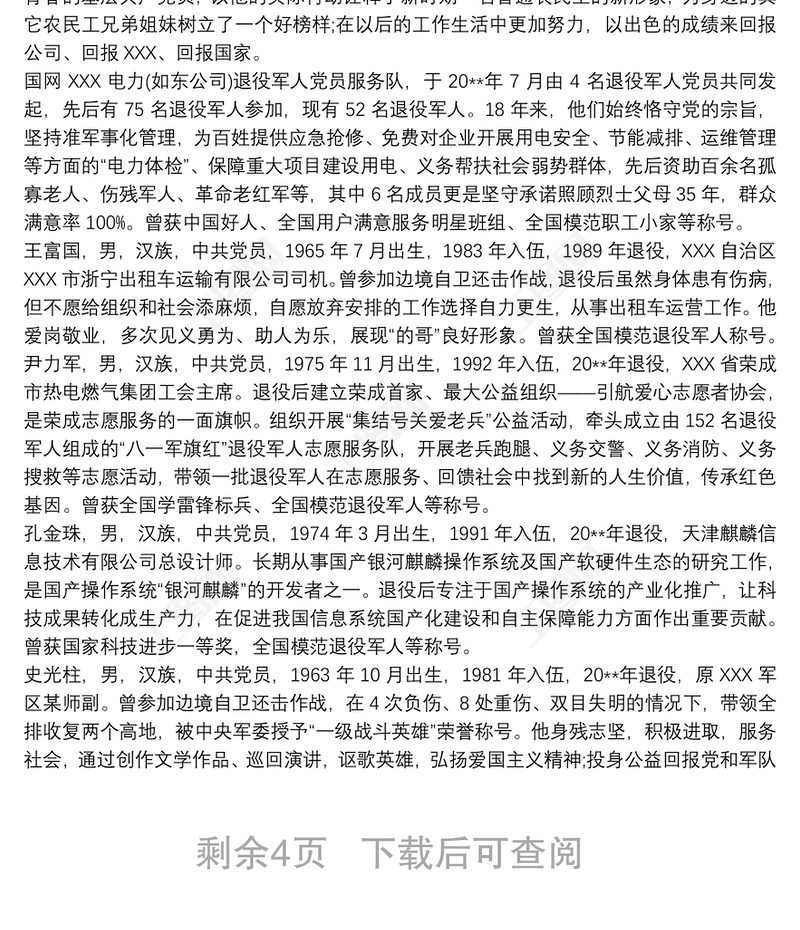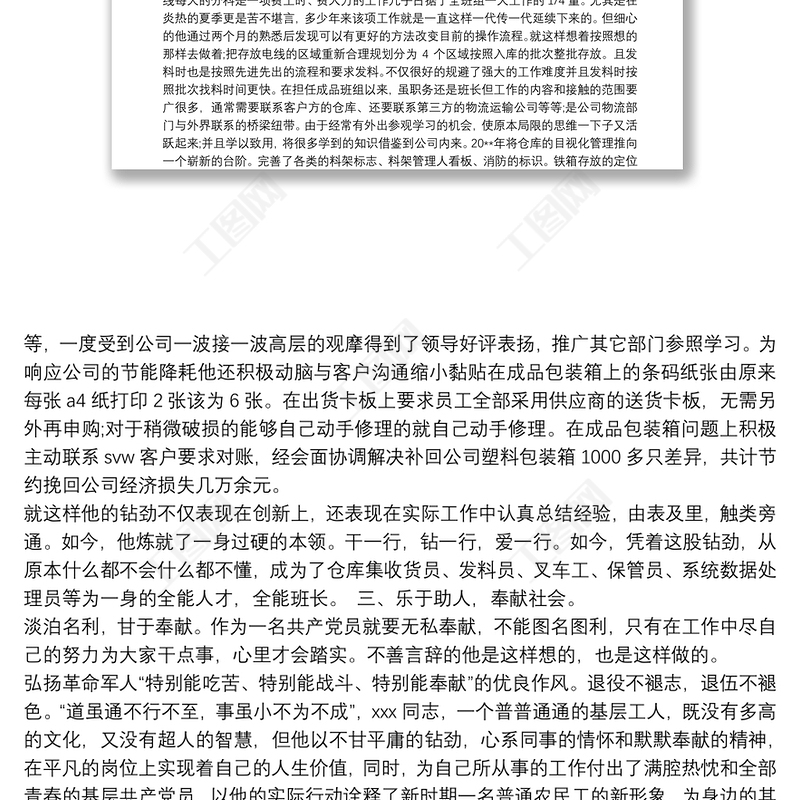 工圖網(wǎng)提供優(yōu)秀退役軍人個人先進典型事跡材料3篇供會員免費下載。更多精彩黨課PPT素材,盡在工圖網(wǎng)。