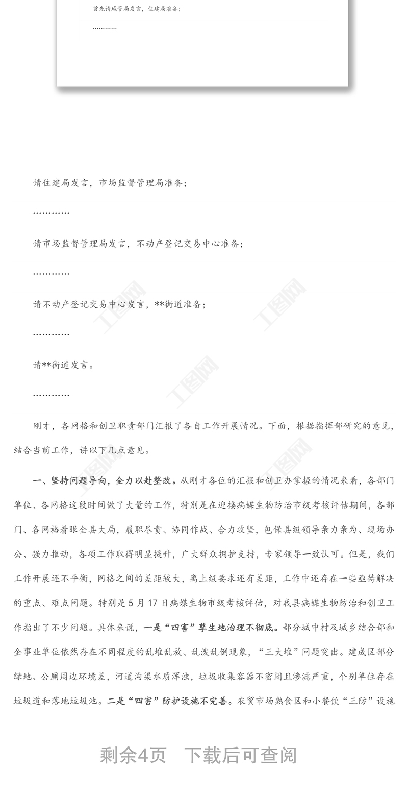 工圖網(wǎng)提供在創(chuàng)建省級(jí)衛(wèi)生縣城工作調(diào)度會(huì)議上的主持講話供會(huì)員免費(fèi)下載。更多精彩黨課PPT素材,盡在工圖網(wǎng)。