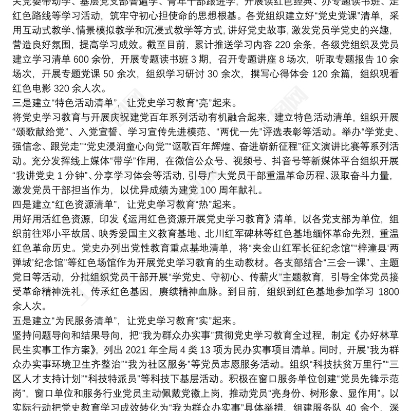 2021黨支部黨史學(xué)習(xí)教育專題組織生活會查擺問題的整改落實(shí)情況2021支部黨史學(xué)習(xí)教育民主生活會班子對照檢查材料2021年黨支部黨史學(xué)習(xí)教育專題組織生活會會議記錄2021黨支部黨史學(xué)習(xí)教育專題組織生活會查擺問題整改清單2021黨史學(xué)習(xí)教育專題組織生活問題清單及整改臺賬2021對黨支部黨史學(xué)習(xí)教育的評語2021年黨委黨支部黨史學(xué)習(xí)教育工作開展情況總結(jié)匯報(bào)2021學(xué)校黨支部黨史學(xué)習(xí)教育工作亮點(diǎn)2021公安黨支部黨史學(xué)習(xí)教育半年工作情況報(bào)告2021鄉(xiāng)鎮(zhèn)衛(wèi)生院黨支部黨史學(xué)習(xí)教育半年工作總結(jié)2021小學(xué)黨支部黨史學(xué)習(xí)教育工作開展情況報(bào)告2021社區(qū)黨支部黨史學(xué)習(xí)教育開展計(jì)劃綱要2021支部黨史學(xué)習(xí)教育專題民主生活會開展情況2021支部黨史學(xué)習(xí)教育成效不佳2021年學(xué)校黨支部黨史學(xué)習(xí)教育自查自評報(bào)告2021年實(shí)驗(yàn)小學(xué)黨支部黨史學(xué)習(xí)教育活動工作總結(jié)