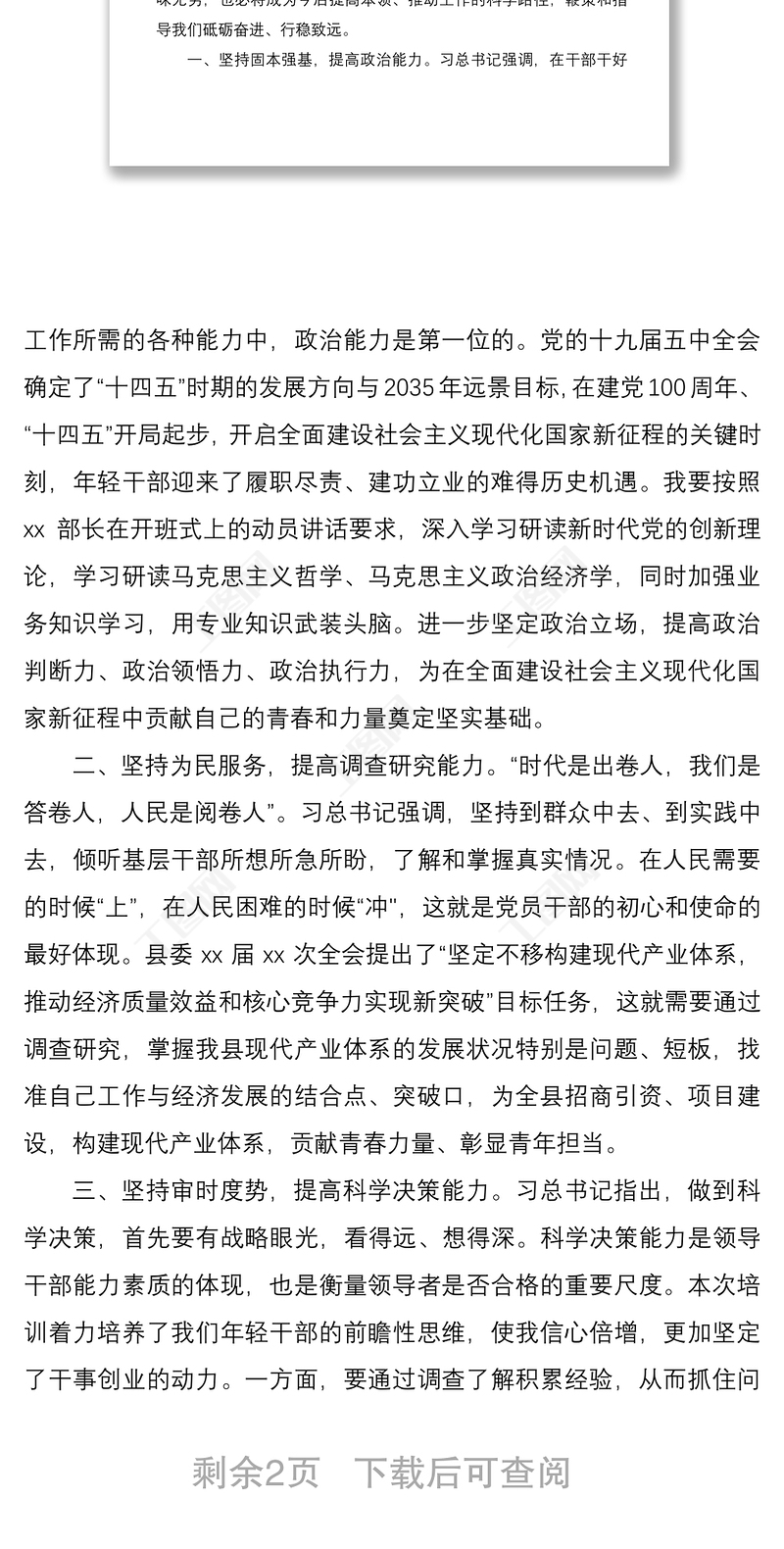 2021在全縣優(yōu)秀年輕干部培訓(xùn)班上的交流表態(tài)發(fā)言