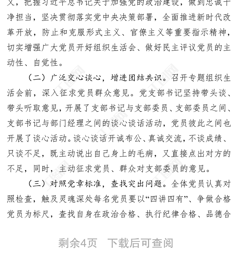 首頁(yè) > WORD文檔 > 組織生活會(huì) > 公司黨支部召開專題組織生活會(huì)和開展民主評(píng)議黨員工作情況報(bào)告.DOCX 【圖片、文字、動(dòng)畫均可編輯】