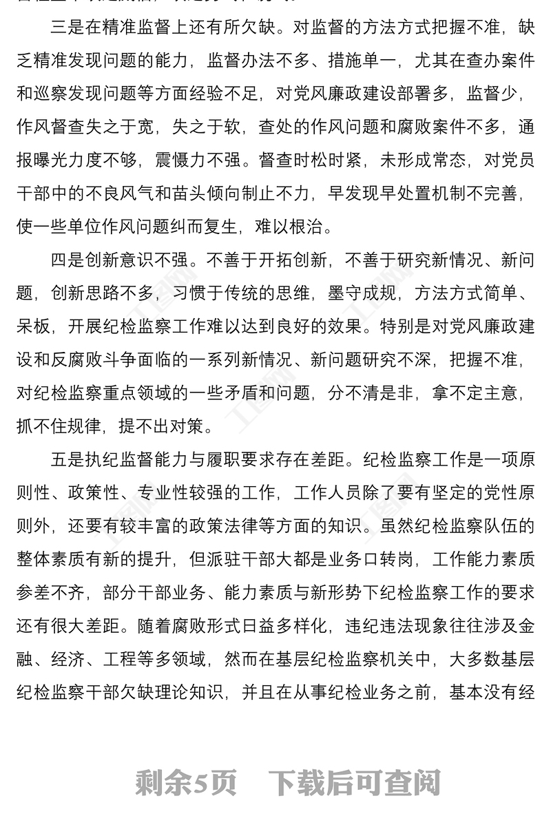2021黨支部上半年紀(jì)檢監(jiān)察工作總結(jié)紀(jì)檢監(jiān)察干部黨性分析材料個(gè)人20212022年紀(jì)檢監(jiān)察干部組織生活會(huì)個(gè)人對(duì)照檢查材料2022被巡察單位向巡察組的紀(jì)檢監(jiān)察專(zhuān)題匯報(bào)材料2022紀(jì)檢監(jiān)察干部五個(gè)帶頭對(duì)照檢查紀(jì)檢監(jiān)察支部2021年工作總結(jié)2021社區(qū)紀(jì)檢監(jiān)察聯(lián)絡(luò)員現(xiàn)狀運(yùn)行情況存在問(wèn)題2022關(guān)于開(kāi)展貫徹落實(shí)紀(jì)檢監(jiān)察機(jī)關(guān)處理檢舉控告工作規(guī)則情況自查自糾工作的報(bào)告2021關(guān)于加強(qiáng)全面從嚴(yán)治黨的調(diào)研報(bào)告2022監(jiān)獄紀(jì)檢監(jiān)察工作情況匯報(bào)2021紀(jì)檢監(jiān)察組監(jiān)督單位黨建工作總結(jié)2022巡察紀(jì)檢監(jiān)察專(zhuān)題匯報(bào)