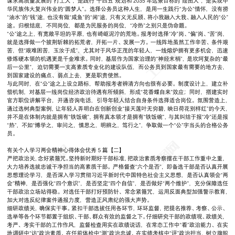 有關(guān)個人學(xué)習(xí)兩會精神心得體會優(yōu)秀5篇 Array