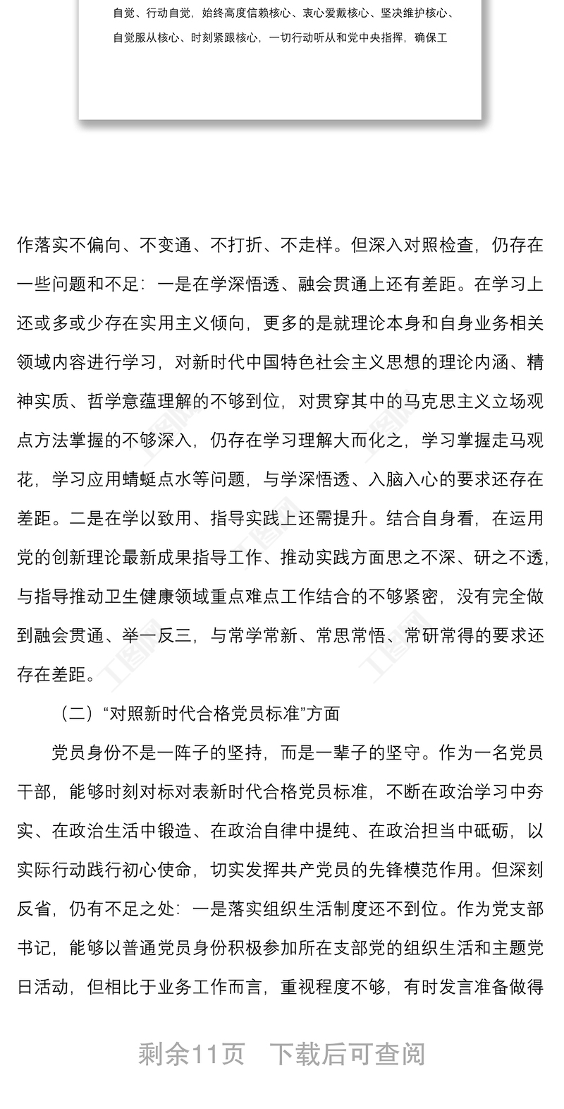 工圖網(wǎng)提供衛(wèi)生健康局黨支部書記2021年度組織生活會(huì)檢視剖析材料范文(四個(gè)對(duì)照)2篇供會(huì)員免費(fèi)下載。更多精彩黨課PPT素材,盡在工圖網(wǎng)。