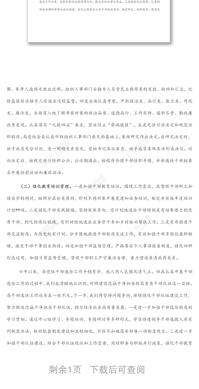 局黨組選人用人工作情況報(bào)告