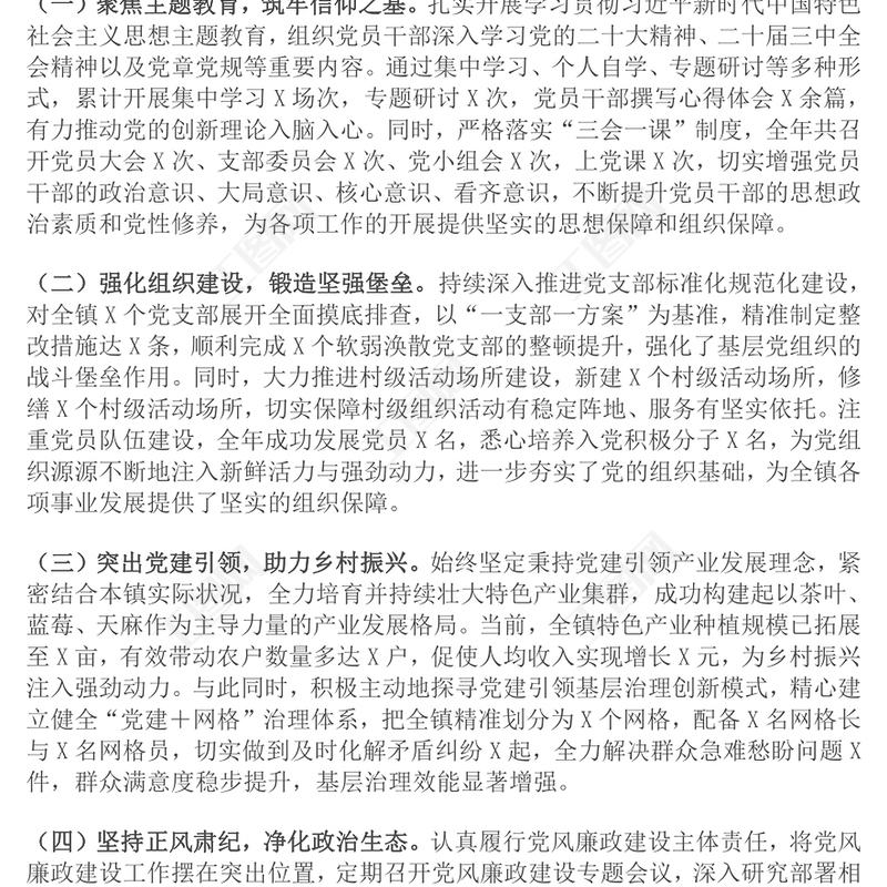 首頁(yè) > WORD文檔 > 2024年度鄉(xiāng)鎮(zhèn)黨委書記抓基層黨建述職報(bào)告范文.DOCX 【圖片、文字、動(dòng)畫均可編輯】