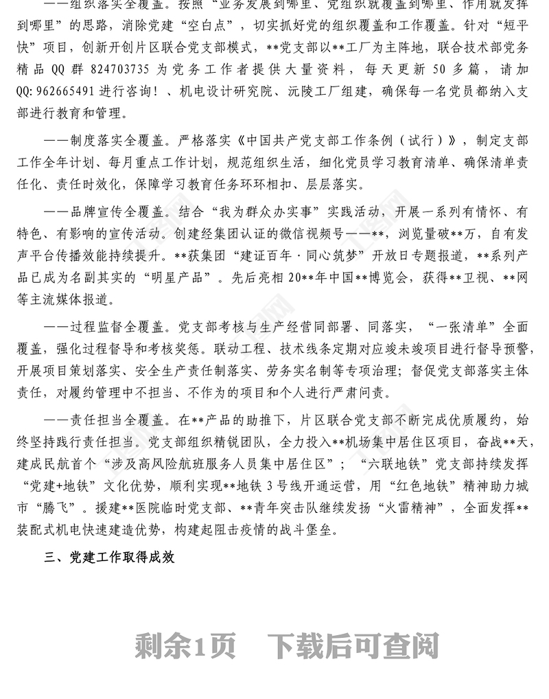 2022年國企黨建工作方向和思路2021施工項目黨支部黨建工作亮點經(jīng)驗材料2021年某國企黨委書記上半年黨建工作述職報告2022機關(guān)黨建工作提質(zhì)增效交流發(fā)言2022融媒體中心經(jīng)驗交流材料國企黨建黨課講稿2022國企黨建品牌創(chuàng)建工作方案2023關(guān)于加強國企黨建工作總結(jié)2023年度工作總結(jié)黨建工作2023國企黨建工作概述總結(jié)2023教育工委高校黨建工作總結(jié)2023交通強國建設(shè)經(jīng)驗交流發(fā)言2023國企黨建促融合工作總結(jié)2023新時代中國特色社會主義思想經(jīng)驗交流材料范文2023工程單位黨建工作年度總結(jié)2023工作總結(jié)黨建
