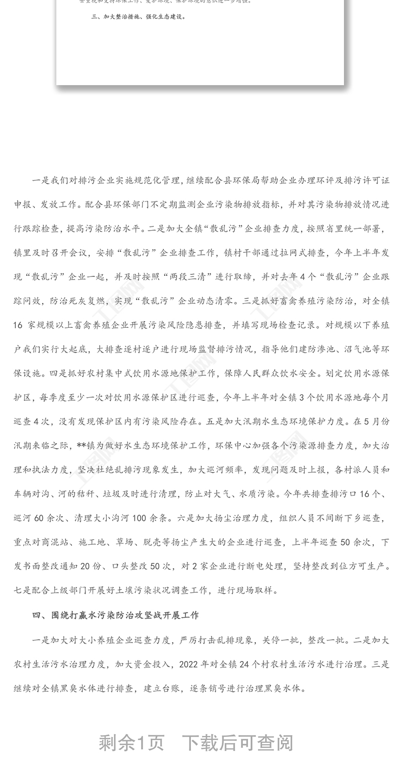 鎮(zhèn)2022年上半年環(huán)保工作總結(jié)