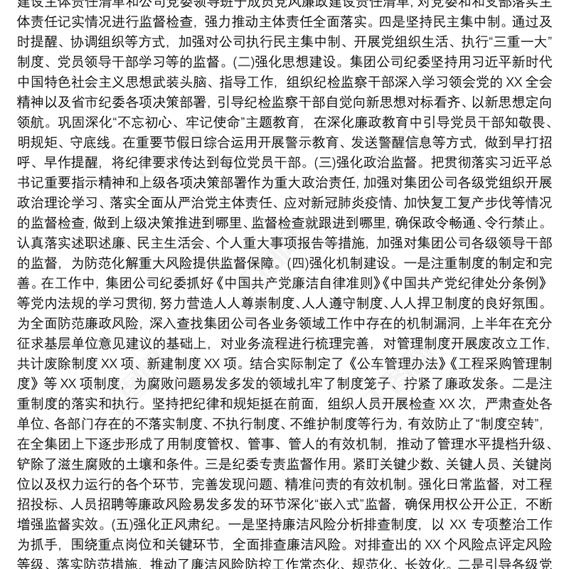 2020年上半年國(guó)企紀(jì)檢監(jiān)察工作總結(jié)范文(集團(tuán)公司企業(yè)紀(jì)檢監(jiān)察總結(jié)匯報(bào)報(bào)告)包含