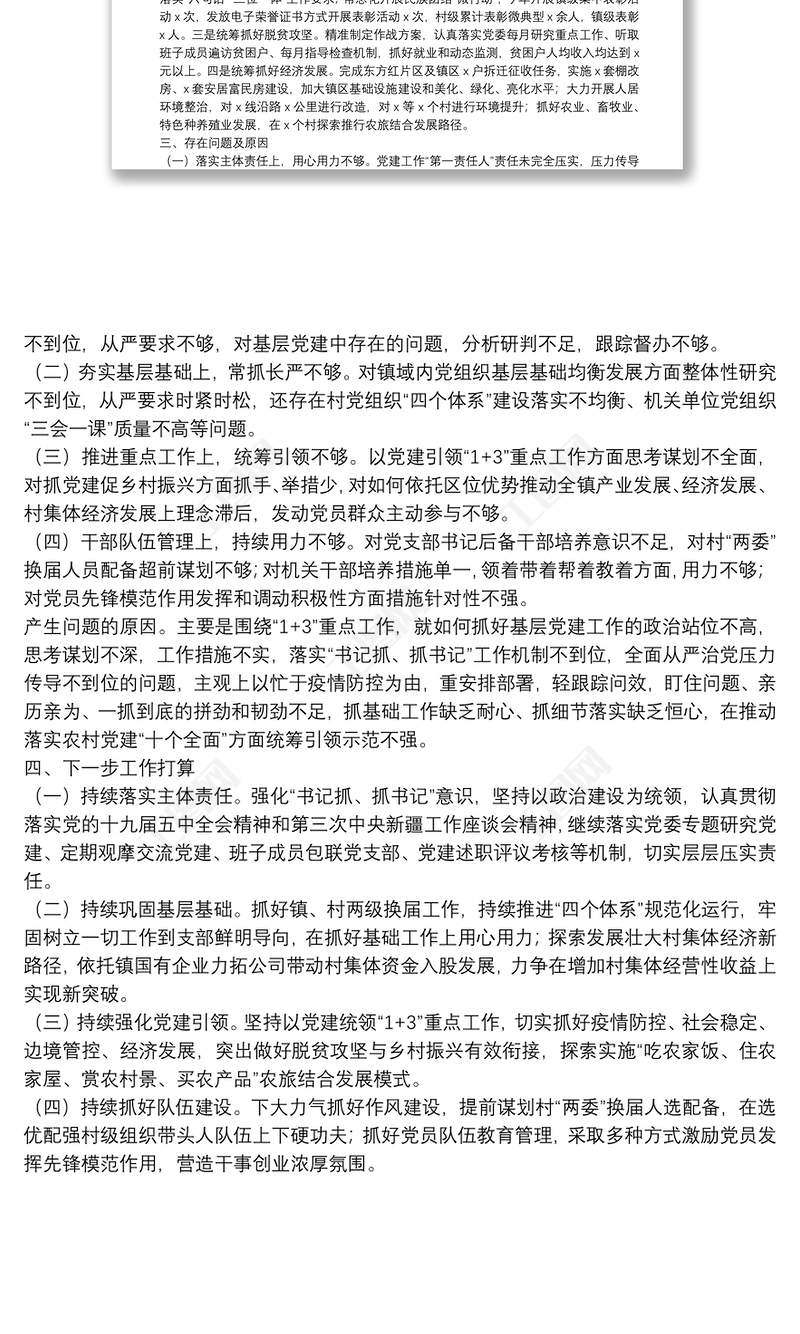20**年度鎮(zhèn)黨支部書記抓基層黨建工作述職報(bào)告 Array