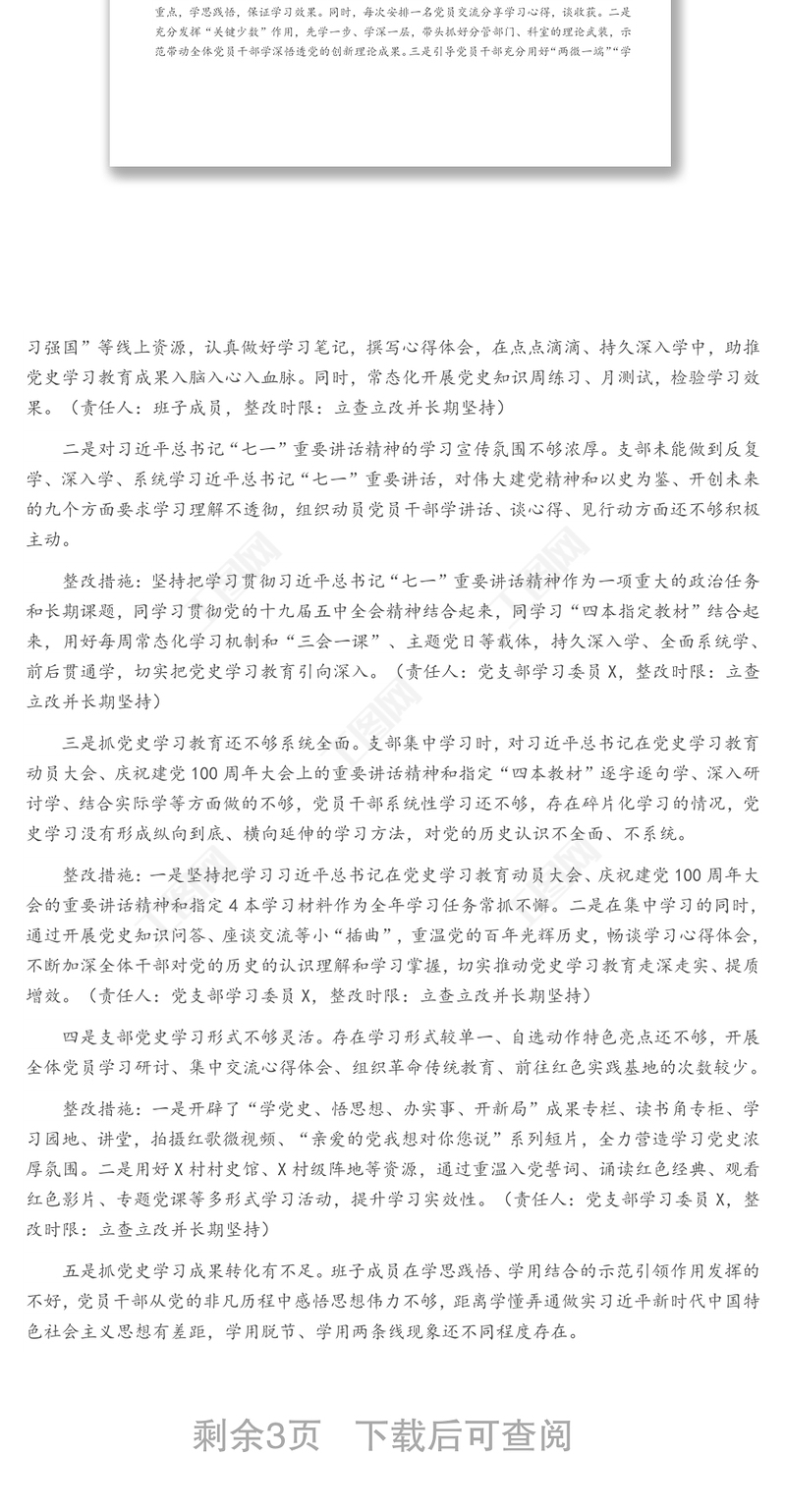 黨支部班子黨史學(xué)習(xí)教育專題組織生活會整改方案,黨史學(xué)習(xí)教育,公文范文 Array