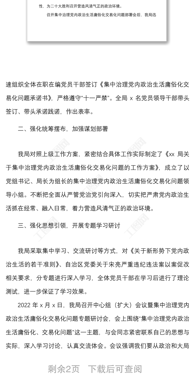 工圖網(wǎng)提供集中治理黨內(nèi)政治生活庸俗化交易化問(wèn)題總結(jié)匯報(bào)范文工作匯報(bào)總結(jié)報(bào)告供會(huì)員免費(fèi)下載。更多精彩黨課PPT素材,盡在工圖網(wǎng)。