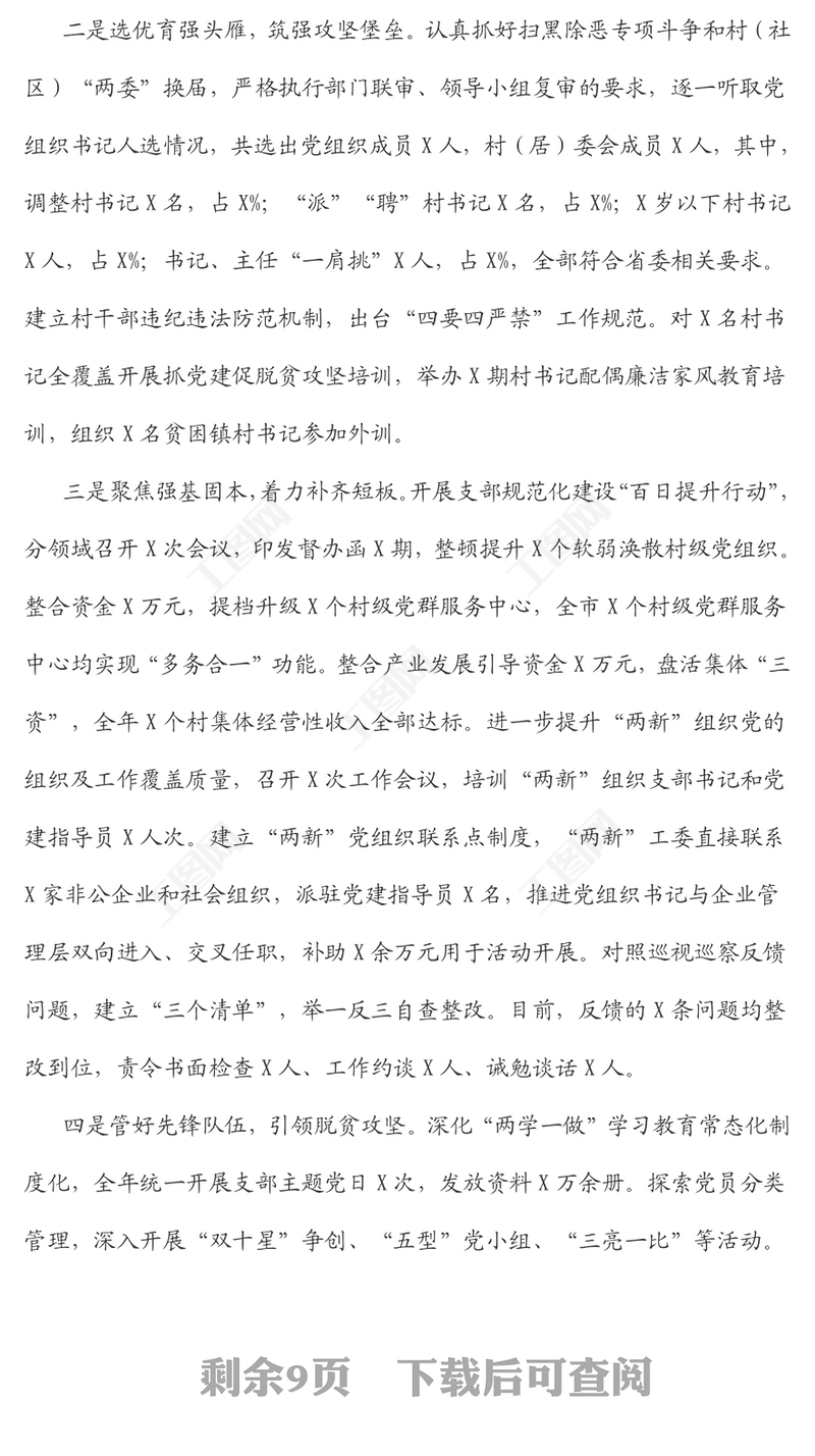 2019年黨組織書記抓基層黨建述職點評基層黨建工作述職報告包含