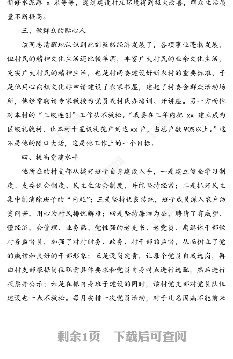 村黨支部書記(黨務(wù)工作者)先進(jìn)事跡材料范文